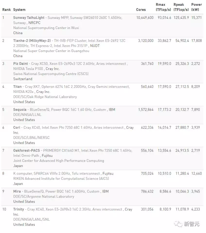 【Top500榜單公布】神威·太湖之光三連冠,美國(guó)20年來(lái)首次跌出前三